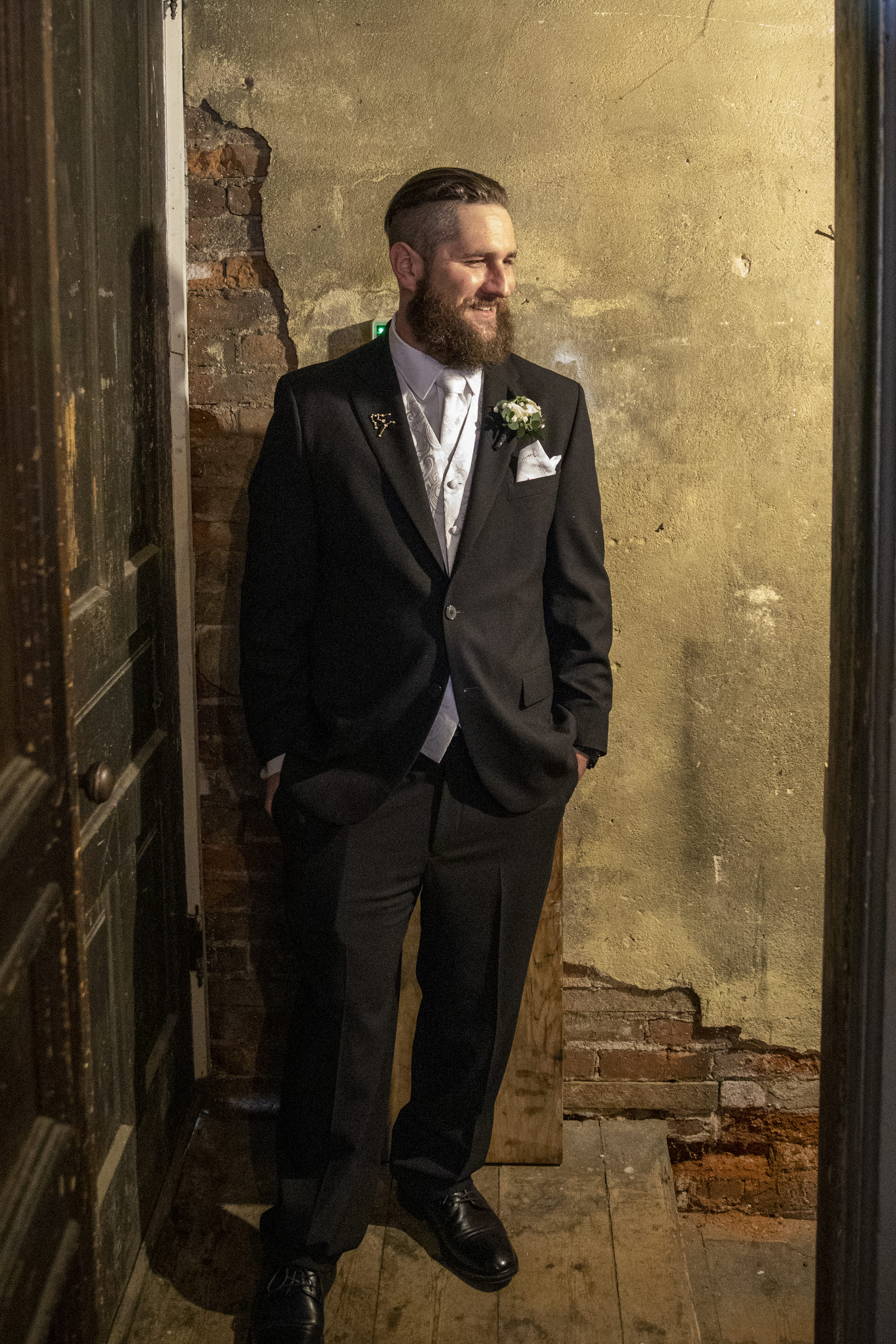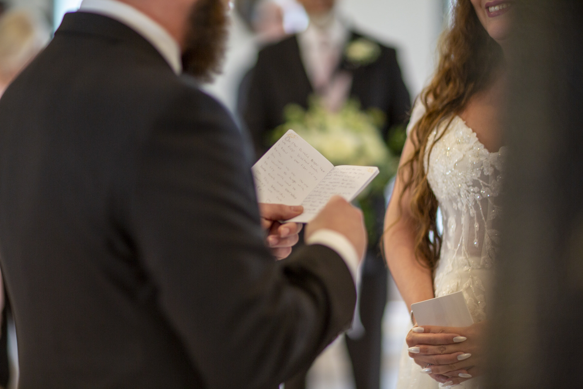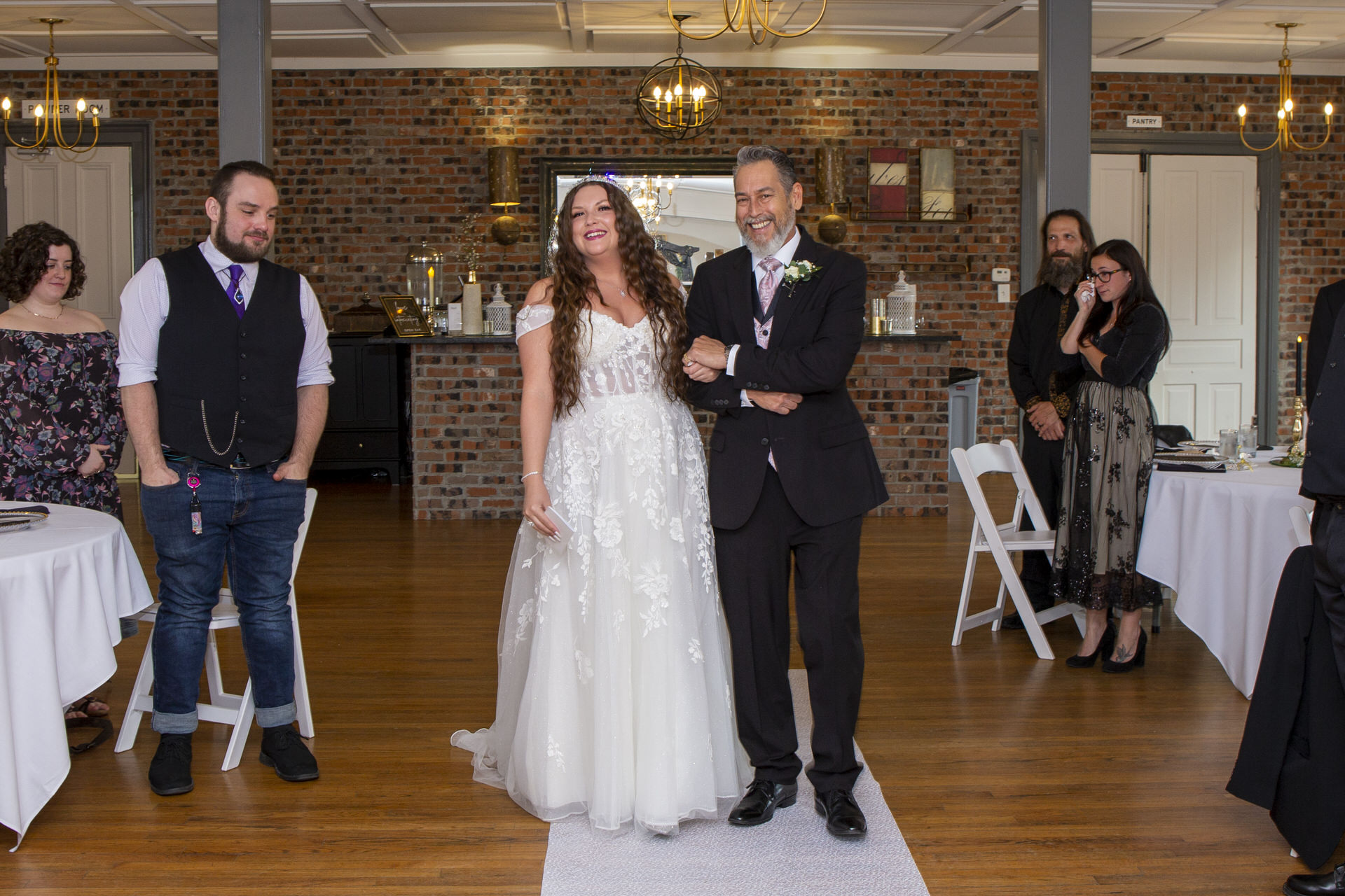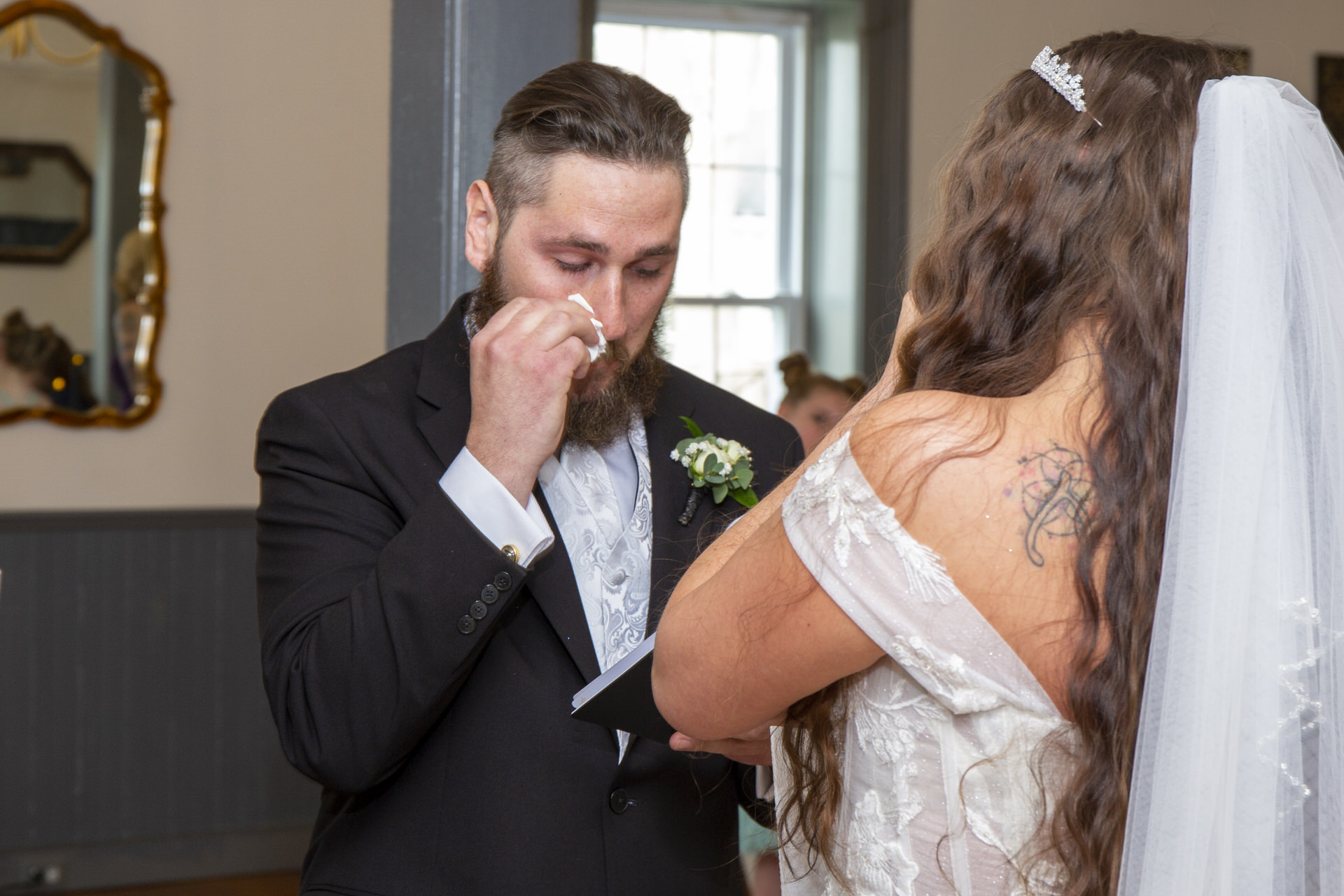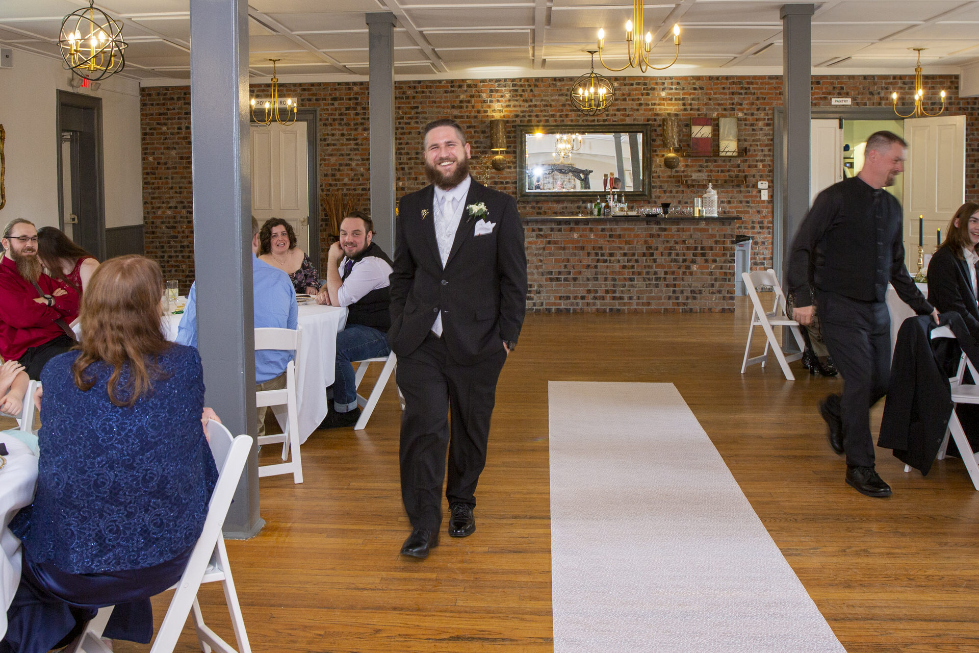 Capturing event details is always a delight. Amanda’s lace gown and Justin’s crisp suit stood out against the venue’s brick walls and rustic wood beams. The pastel floral arrangements added a touch of spring to every corner. Every detail, from vintage table settings to handwritten place cards, reflected the couple’s style.