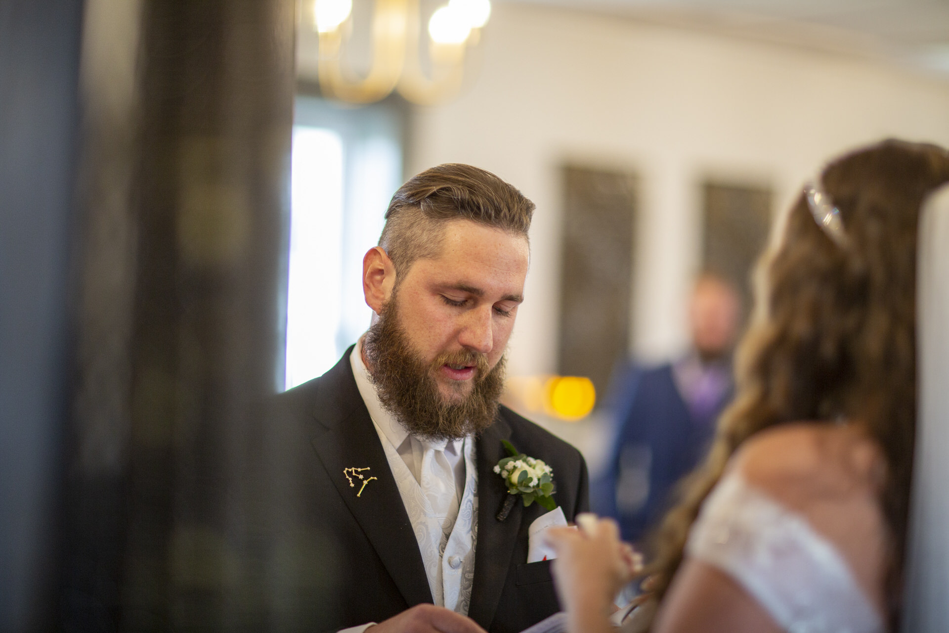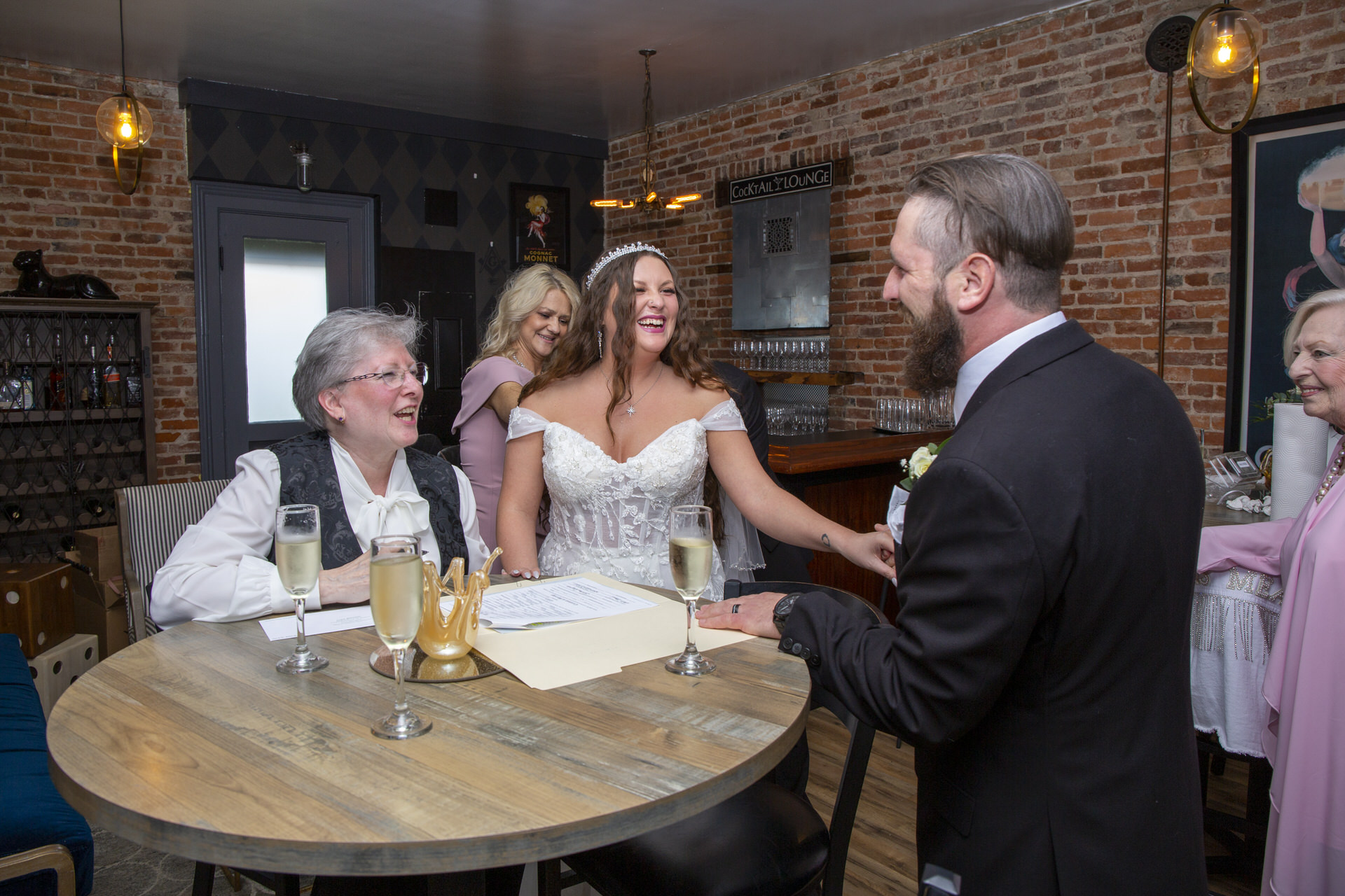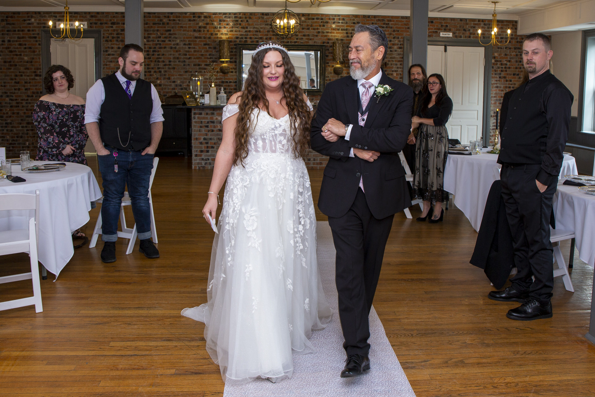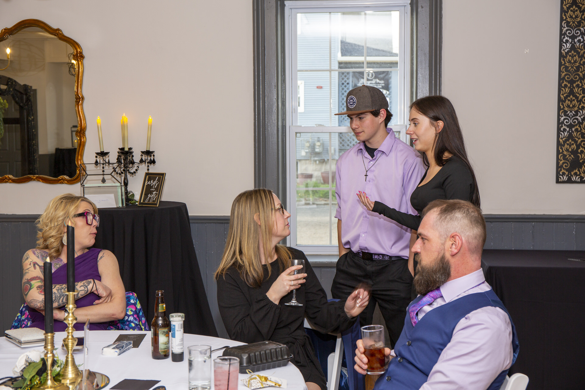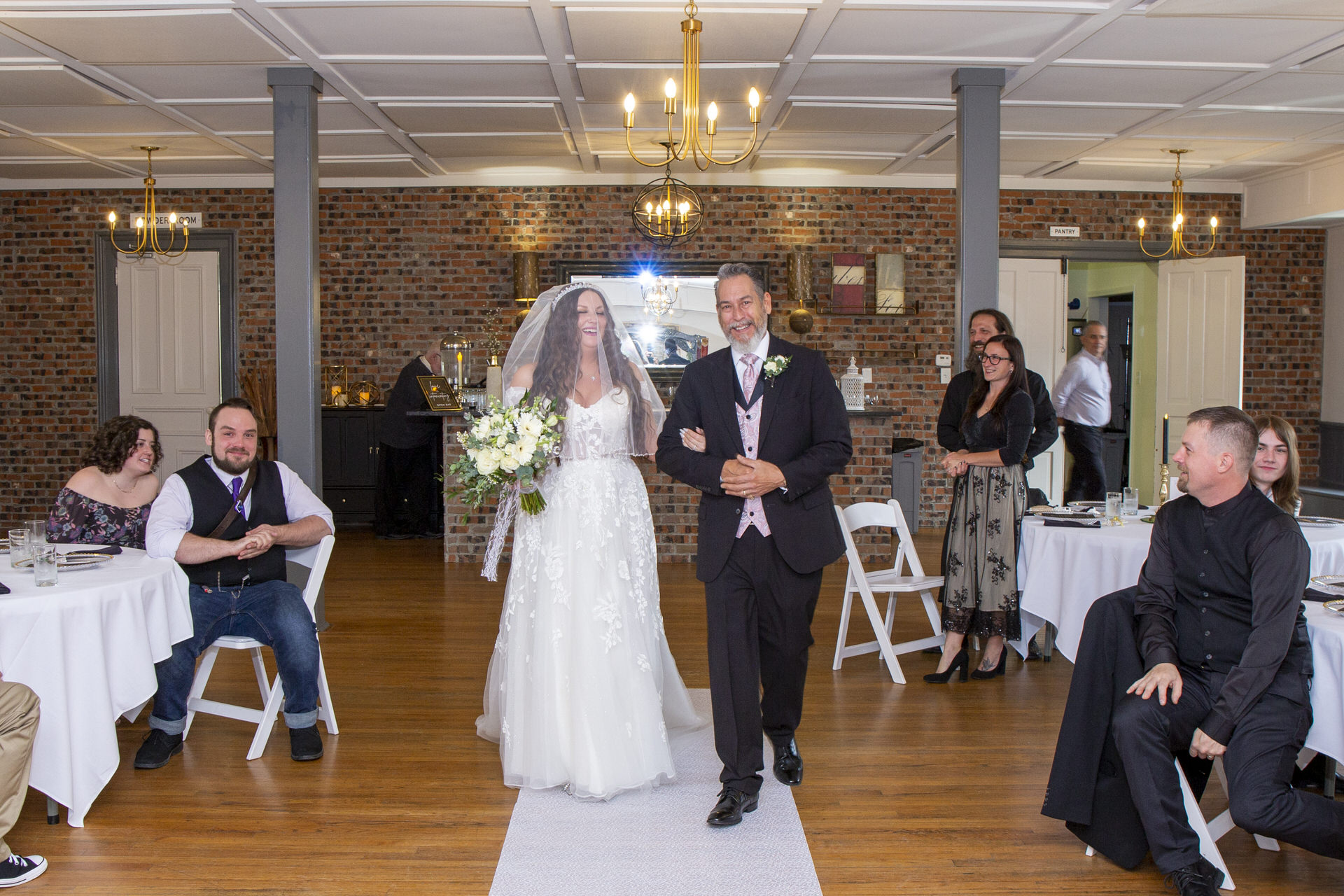Capturing event details is always a delight. Amanda’s lace gown and Justin’s crisp suit stood out against the venue’s brick walls and rustic wood beams. The pastel floral arrangements added a touch of spring to every corner. Every detail, from vintage table settings to handwritten place cards, reflected the couple’s style.